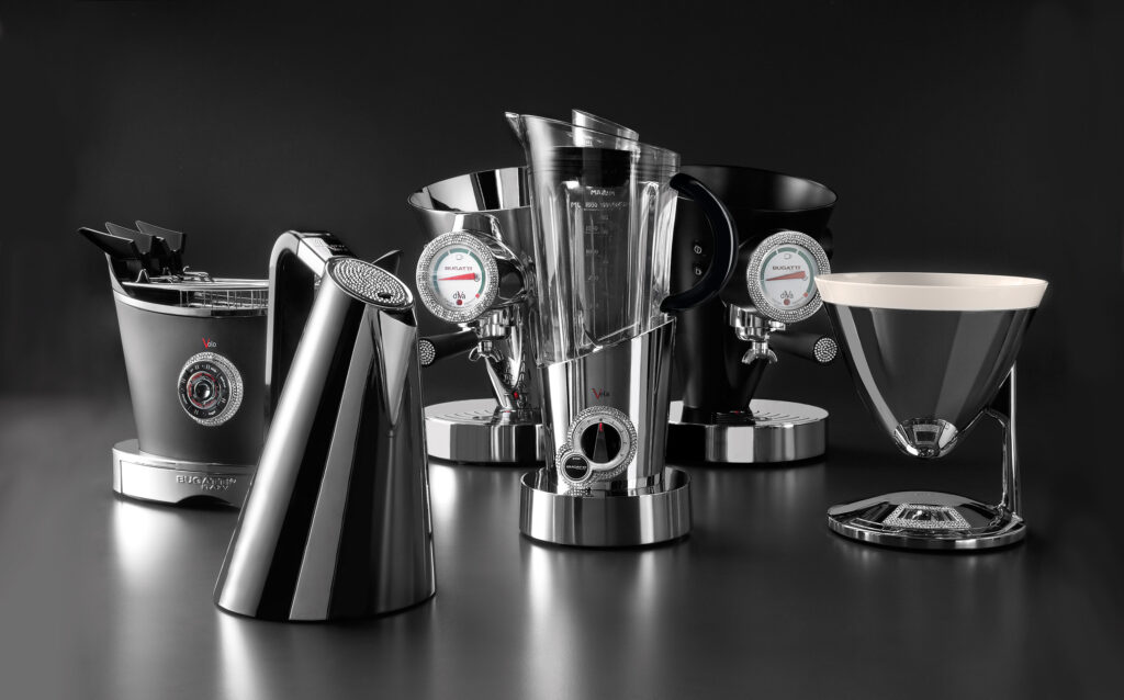 More than 20 years after its debut, the Bugatti Diva stands as a true design classic, a testament to the vision of Andreas Seegatz (Stars Milano). Its instantly recognizable “V” silhouette, crafted from die-cast aluminum with a brass boiler, has become the signature shape of the brand.